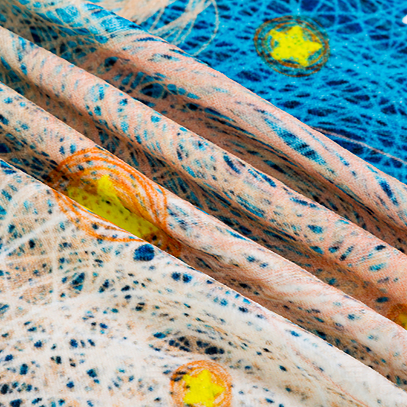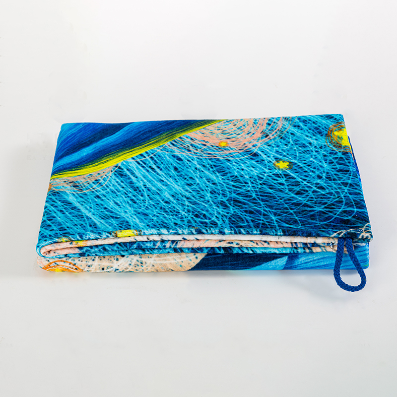 Denna all-Cotton strandhandduk antar digital tryckning och färgningsteknik, med livliga och livliga mönster och hög färgstabilitet. Terry är tätt, med en mjuk känsla och stark vattenabsorption.