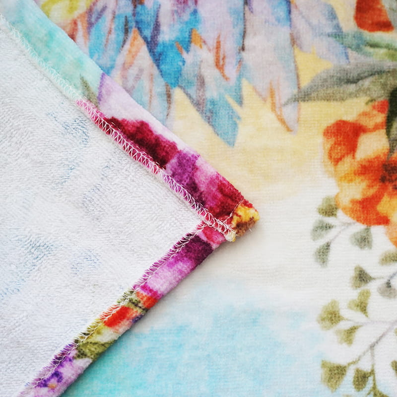 Denna handduk är tillverkad av rent bomullstyg som väger 400 GSM och antar digital tryckteknologi, vilket resulterar i en låg minimikvantitet och låga provtagningsavgifter. Anpassad enligt ritningar, oavsett mönster och storlek.3