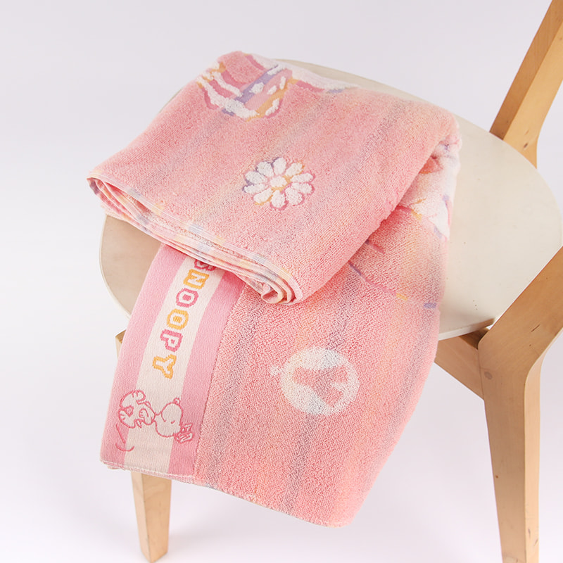 Denna tecknad rena bomullsbadhandduk antar en tredimensionell jacquard-design, med en mjuk känsla, fluffiga pälsslingor, god vattenabsorption, god andningsförmåga och ingen blekning eller utsläpp.3