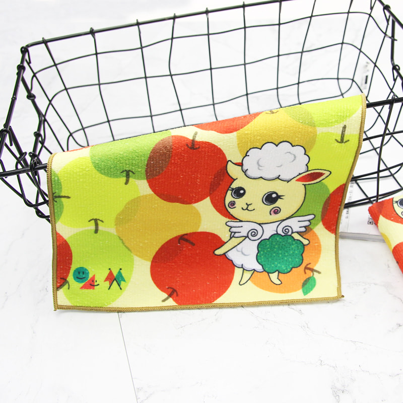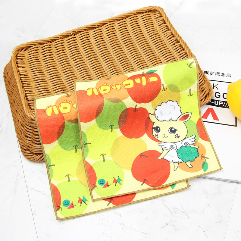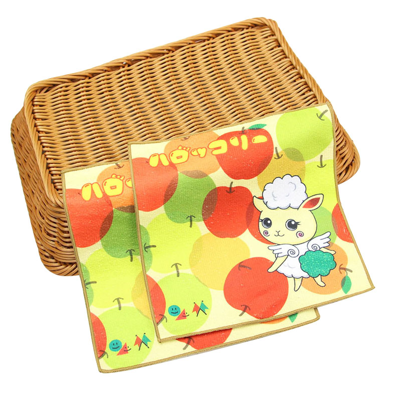 Denna ultravina fibervärmeöverföring tryckt fyrkantiga halsduk har tecknad mönster, och tyget är hudvänligt, antibakteriellt och antibakteriellt. Det kan användas som barnens näsduk.3